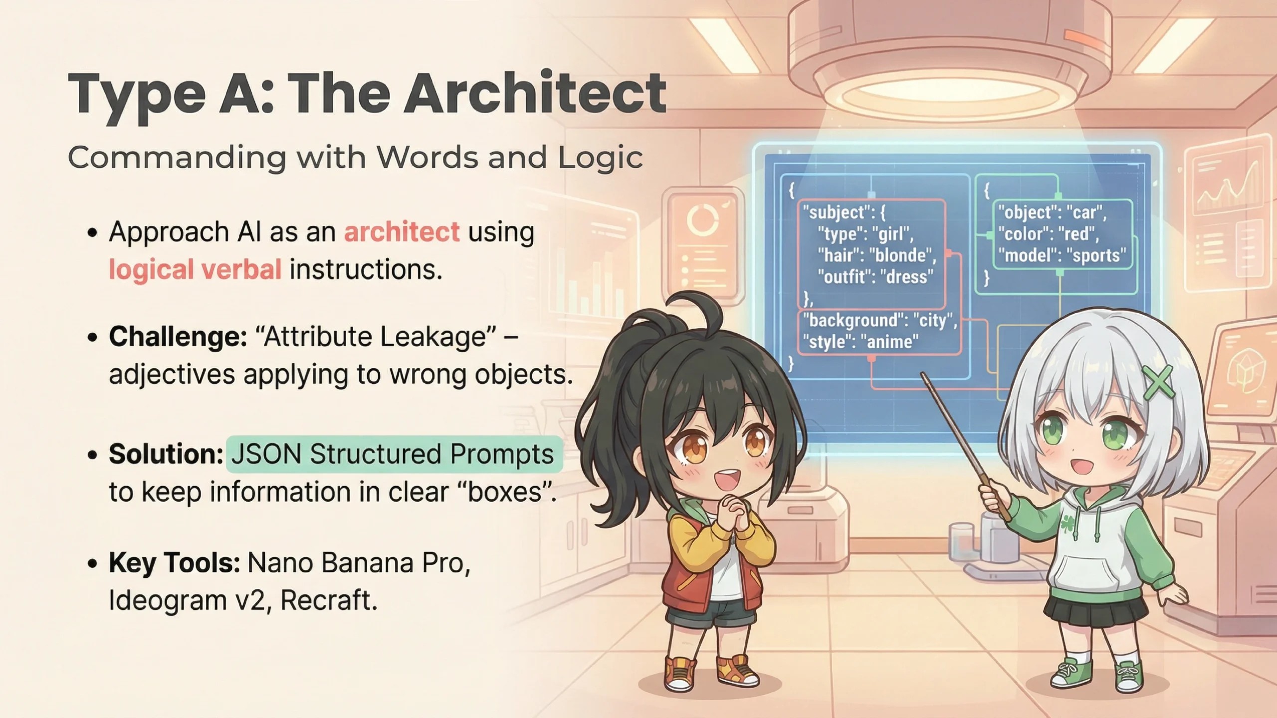 Modern Type A tools use "JSON Structured Prompts." Think of it like a multiple-choice answer sheet — information goes into clearly defined boxes.