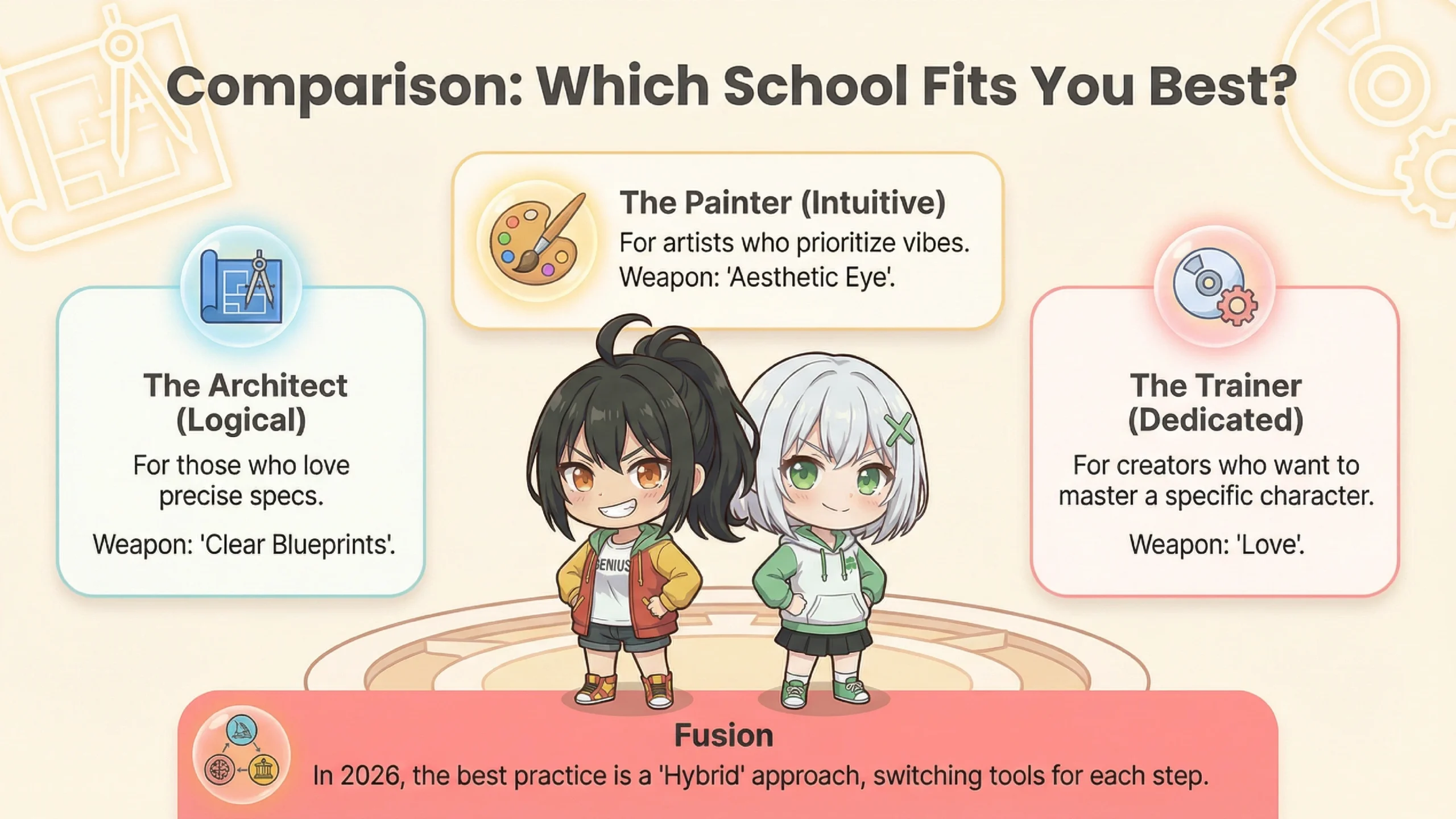 Actually, you don't need to stick to just one school. In 2026, these approaches are merging. For example: Create character LoRA (Type C) → Apply style reference in Midjourney (Type B) → Final text and layout in Ideogram (Type A).