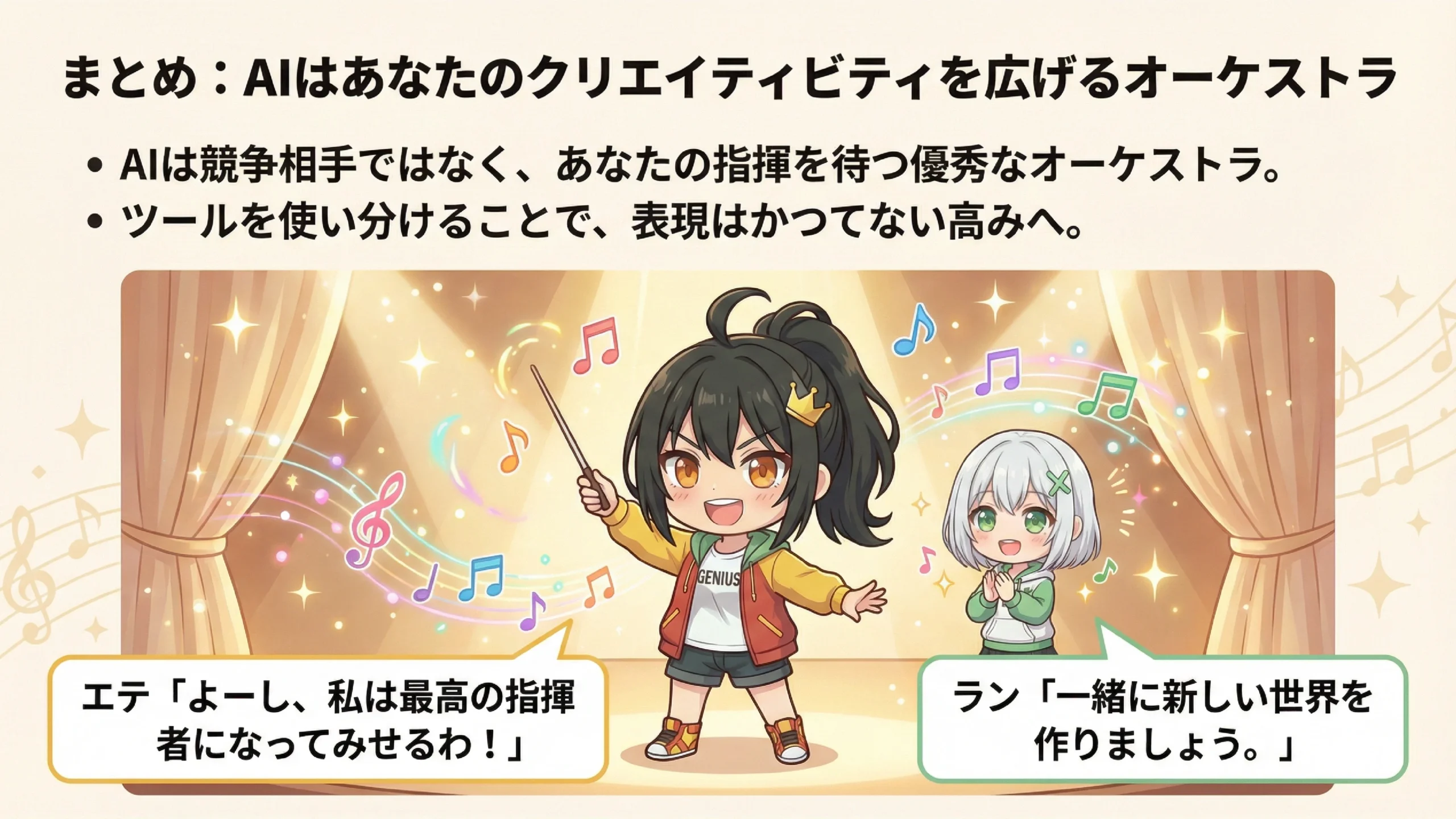 AIはもはや、恐れるべき競争相手ではありません。あなたの指揮を待つ優秀なオーケストラなんです。