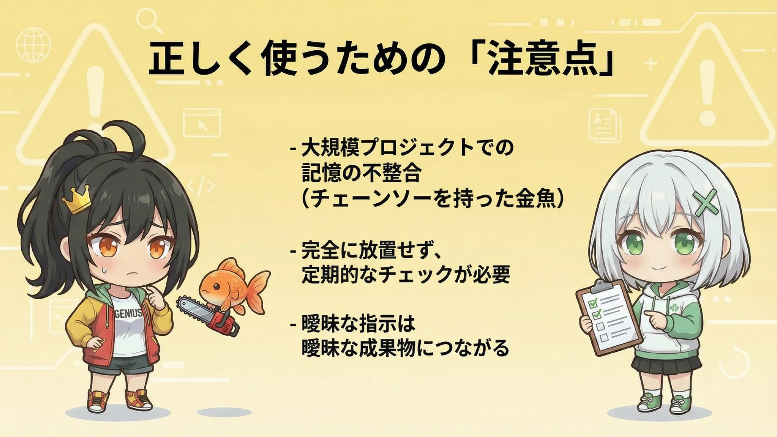 ⚠️ 注意点1:大規模プロジェクトでの「健忘症」問題