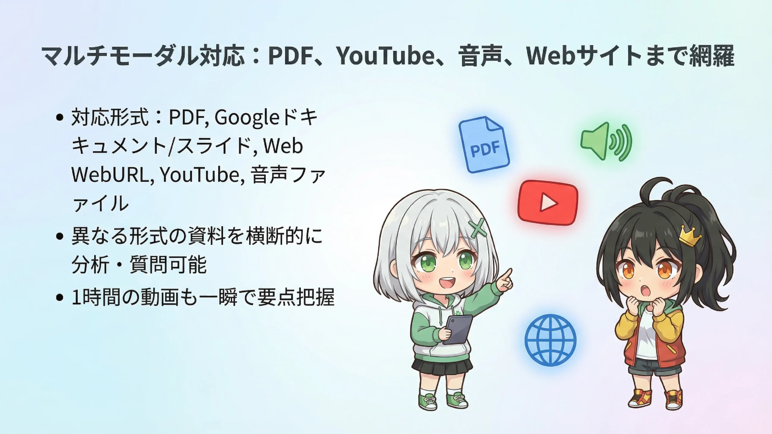 ✅ PDF、YouTube、音声ファイルなど多様な形式に対応
