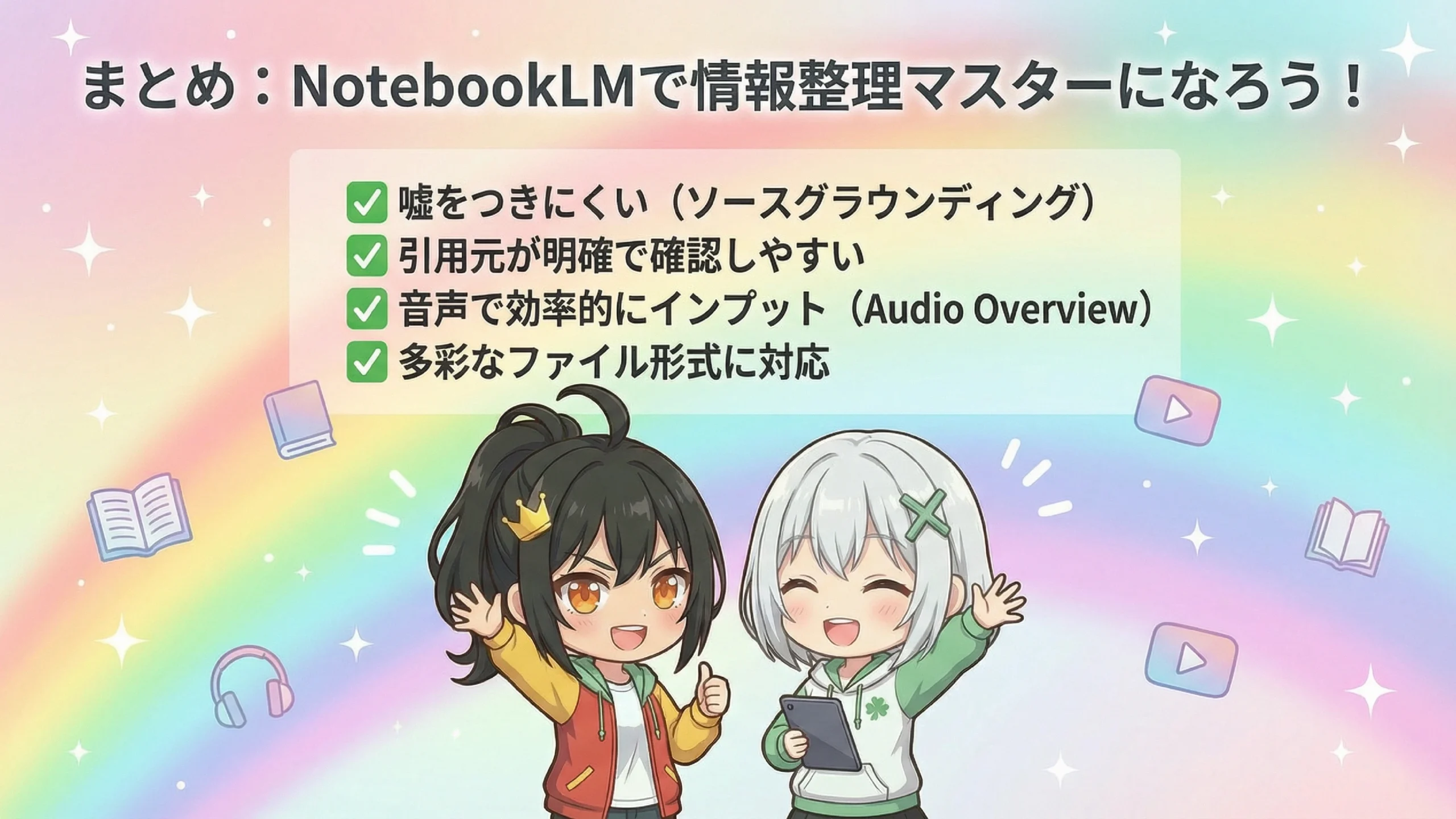 はい!今回ご紹介したNotebookLMのポイントをまとめると...